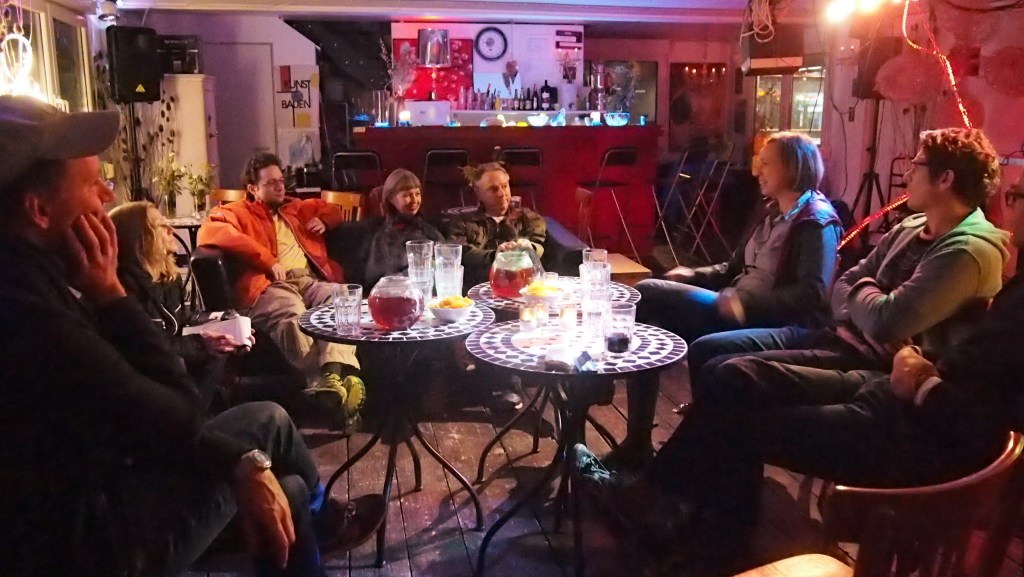 In der romantischen Bar der Wunderkammer genehmigen wir uns danach einen Glühwein, nach der gemeinsamen Diskussion ein feines Kürbissüppchen im Birkengarten am Feuer. Vesna hat aus Istrien sogar einen hausgemachten geräucherten Ziegenkäse mitgebracht…