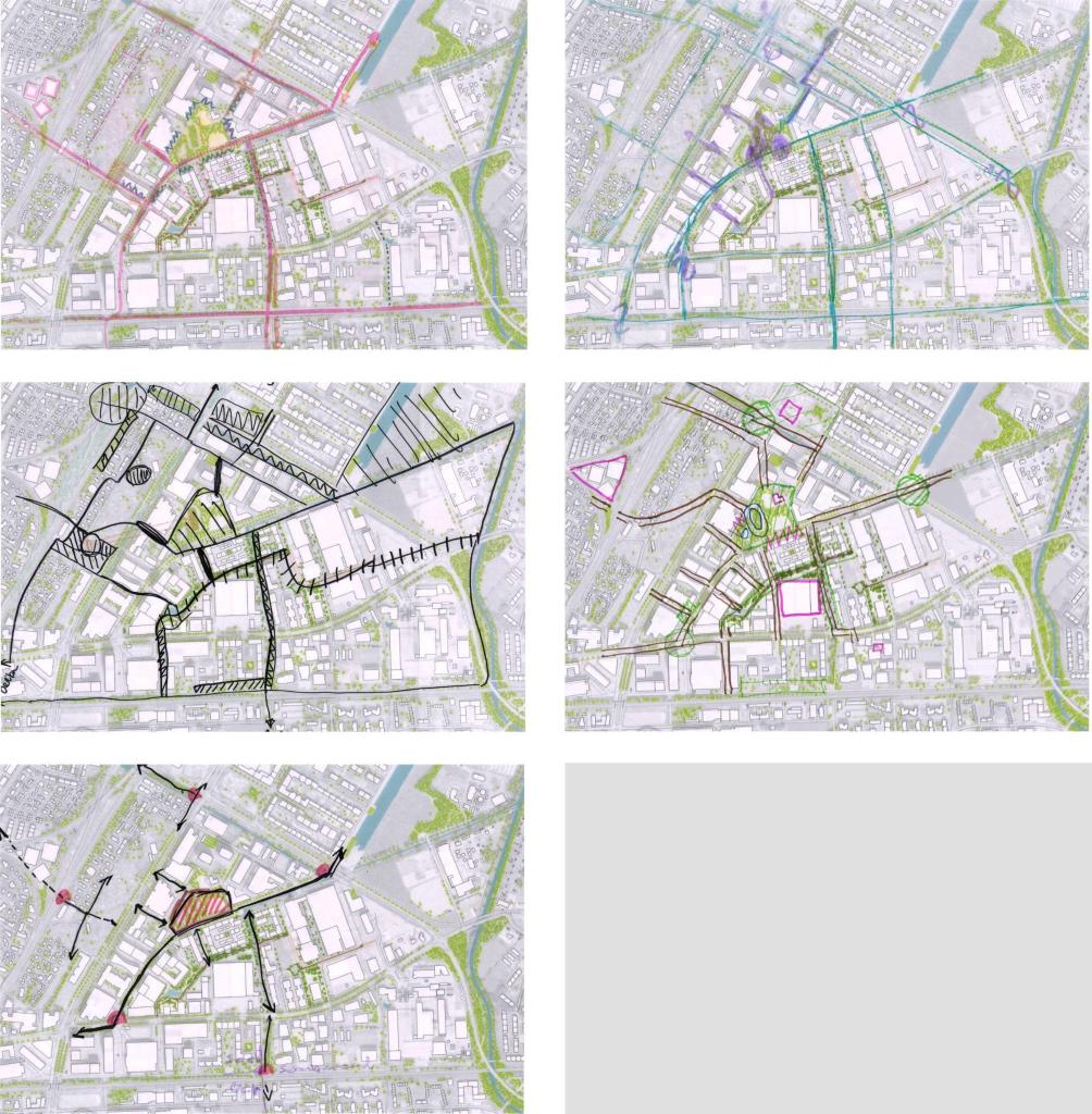 Von Teilnehmenden gezeichnete Karten zu Achsen, Freiräumen und Hindernissen